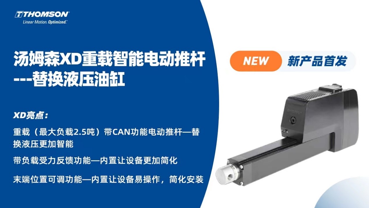 2023年我們的新的家族成員XD重載(最大可達2.5噸)長壽命,內置受力反饋,位置反饋,CAN總線的推桿面世,替換大負載的液壓環境,擴大推桿的使用場景。