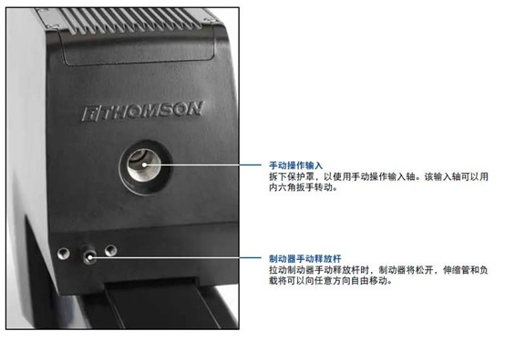 制動(dòng)器手動(dòng)釋放和手動(dòng)操作是Electrak XD的可選功能,在您訂購時(shí)需要在訂購代碼中寫明。