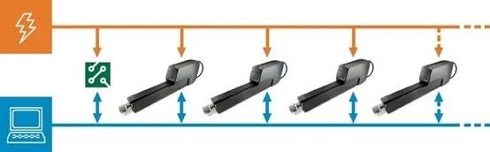 HD電動推桿最大的負載可達1.6噸,行程1米,可以實現末端限位反饋,CAN總線控制,可多根推桿同步運動—應用在Tribine聯合收割機。