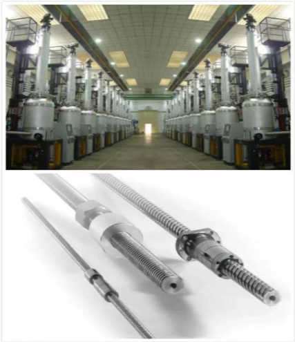 絲杠帶動(dòng)坩堝慢慢向上移動(dòng),坩堝內(nèi)是熔化后的硅晶原料,當(dāng)晶體析出之后液面會(huì)下降,此時(shí)由絲杠移動(dòng)調(diào)整液面位置,繼續(xù)將晶體析出。 金屬螺母和耐高溫的潤(rùn)滑脂使絲杠能夠在高溫的環(huán)境下穩(wěn)定運(yùn)行。