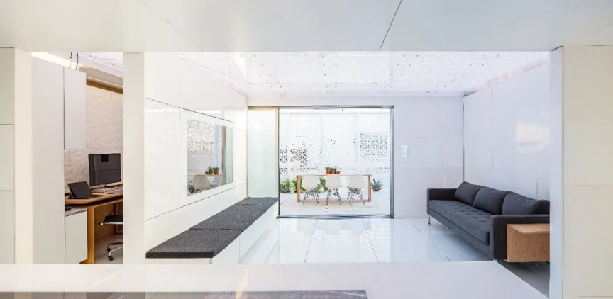 Wheeler說,F(xiàn)lexSpace 功能使該結(jié)構(gòu)在 80平米的占地面積內(nèi)提供約135平方米的起居空間。原型的家庭辦公室、客廳和臥室的區(qū)域完全可以通過滑動它們的隔板進(jìn)行調(diào)節(jié)。