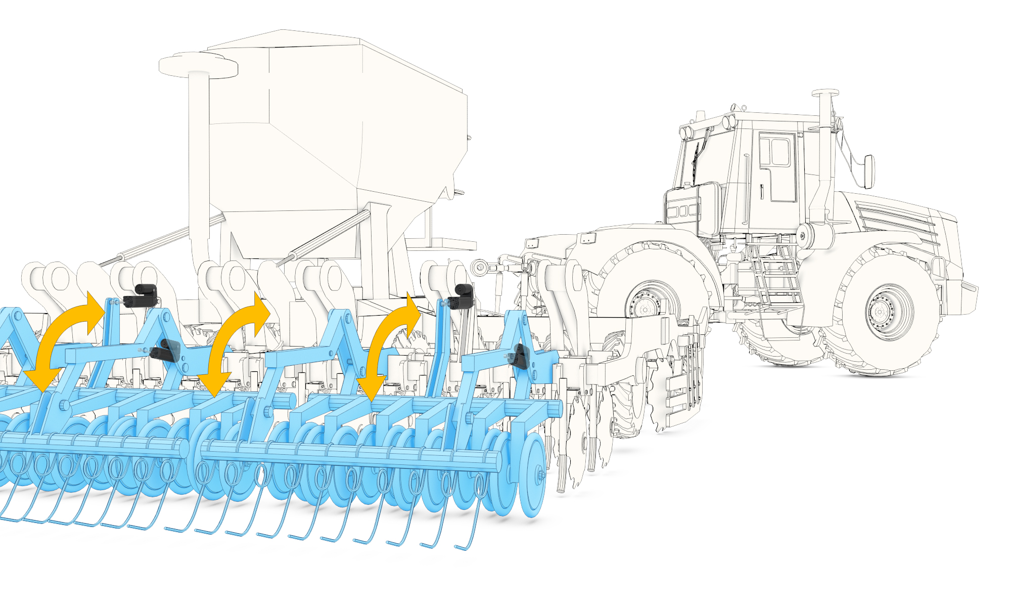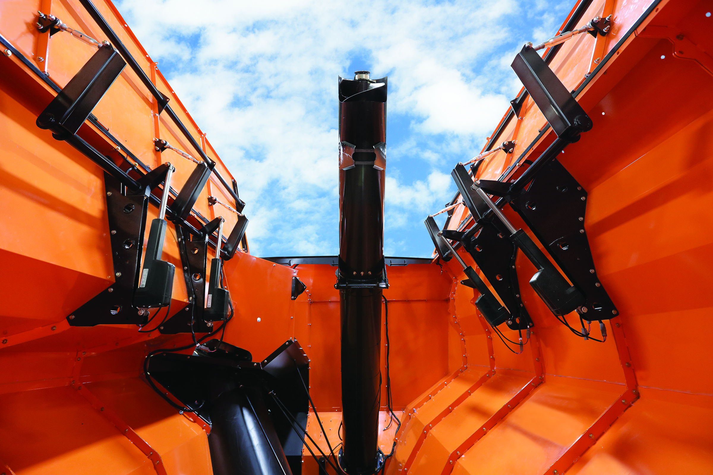 Figure 1. Embedded electronics synchronize multiple smart actuators to control storage bin doors opening and closing on this grain harvester.