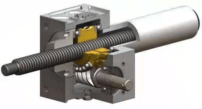由精密蝸輪傳動裝置(蝸桿軸與蝸輪)驅動,絲杠的旋轉運動轉換成絲杠上移動螺母的直線運動。