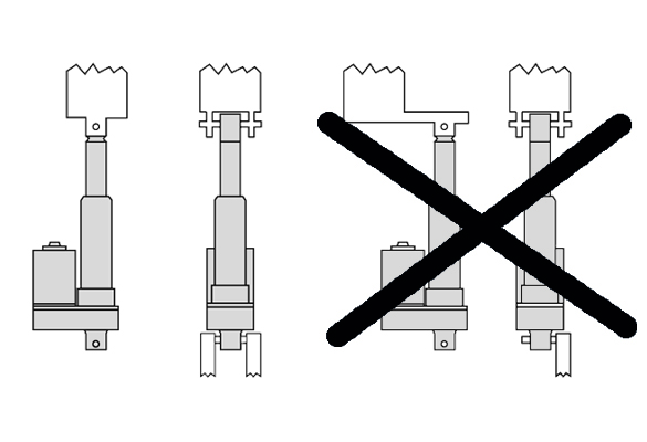 側向負載會推動執行器組件錯位。伸縮管與套管發生摩擦。滾珠螺母無法沿絲杠平穩移動。齒輪甚至可能會損壞。它可能通過約束對執行器造成驗證、無法修復的損壞。